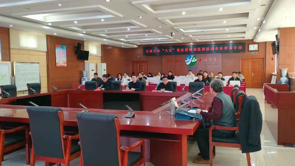 为认真贯彻落实习近平法治思想,推动全局法治宣传教育工作守正创新、提质增效、全面发展,有效提升全局党员干部法治思维理念,提高依法管水治水能力。根据我市“八五”普法规划工作安排,11月1日下午,我局组织开展“2024 年石家庄市“八五”普法讲师团巡讲活动免費娛樂城专场”讲座,特别邀请市“八五”普法讲师团成员颜成利同志为大家进行习近平法治思想专题讲座,局领导杨振涛同志出席了培训活动,局机关各科室、局属各单位共50余人参加了培训。
